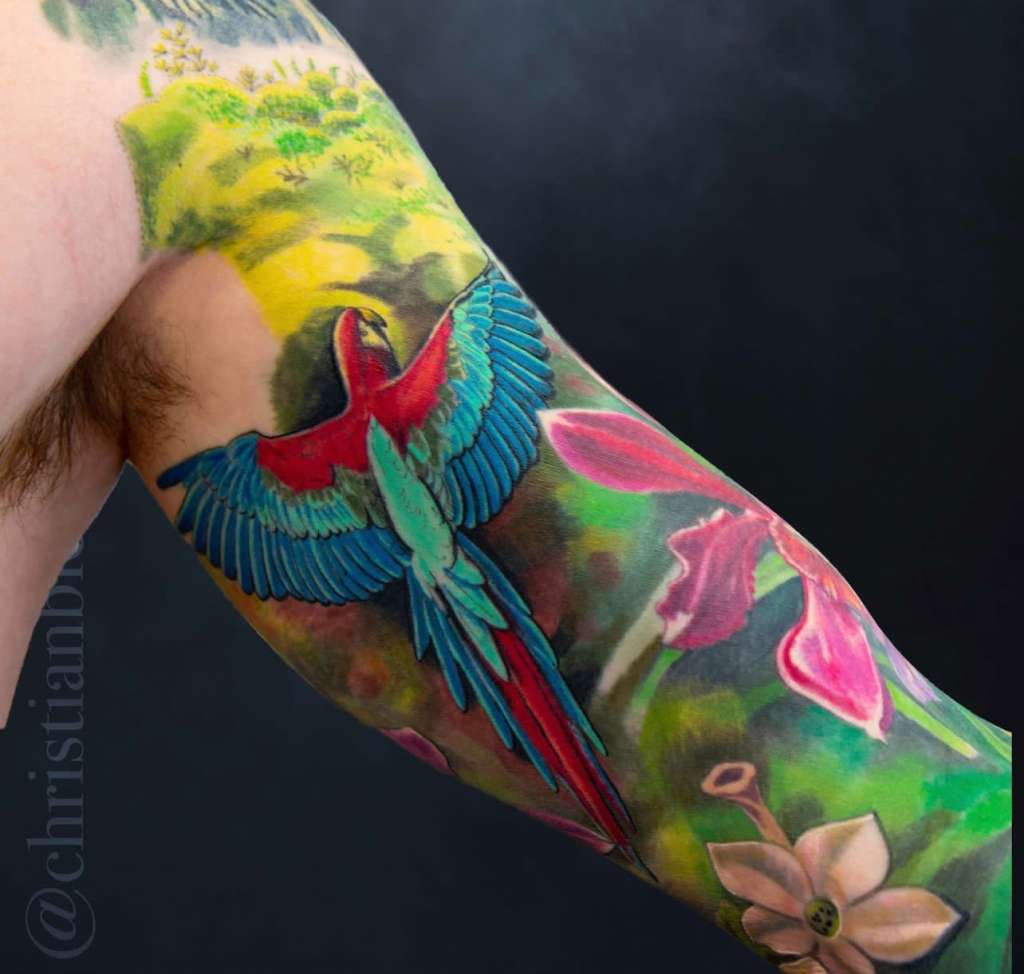 I have been drawing and creating for as long as I can remember. I received my art degree from the University of Arizona, but decided to pursue tattooing after getting my first tattoo. I love working with color, and creating images with lights and darks to produce something new, unique and creative. Over the past twelve years I have worked with some of the best people in the industry from Paul Booth and Paolo Acuna just to name a few. Over the years I have honed my skills to be able to do free hand tattoos, and to really get to the core of what a client wants, so their experience is amazing and they get the tattoo they’ve always dreamed of.